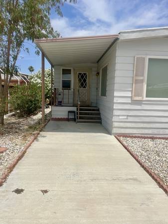 Sky Haven is a Senior community 55+ all occupants need to be over 55 years old. Welcome to Sky Haven Desirable manufactured home Gated Community located in the heart of Desert Hot Springs. . Close to the center of town and shopping and restaurants. Spacious home with family open to dining room and picture window views. Two bedrooms, two bathrooms. Bathroom vanities and floors have been updated recently. Full kitchen with fridge, oven and stove. Season patio has been enclosed if wanted for usable space. Back Patio area for outside living. Carport and shed shed. A/c was replaced in the last 5 years. Gated Community with clubhouse, 3 pools, 3 hot tubs and social community. Tenants to pay utilities including what is billed through HOA. Landlord pays HOA fee and park fee.