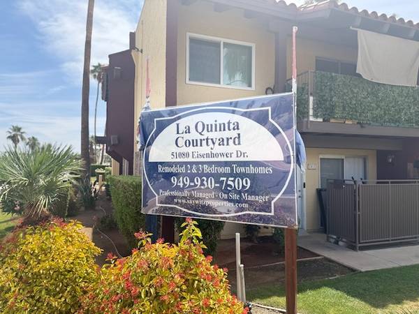 The La Quinta Courtyard Townhomes is a 26-unit apartment complex located at Calle Tampico and Eisenhower Dr. The property is located 1 block from the La Quinta Recreation Center, a large sports park, and Old Town La Quinta. There is a large city park and the La Quinta Civic Center that is located 2 blocks away. The property is also located across the street from an elementary school and park and is down the street from the La Quinta Resort and Spa.