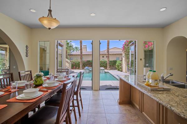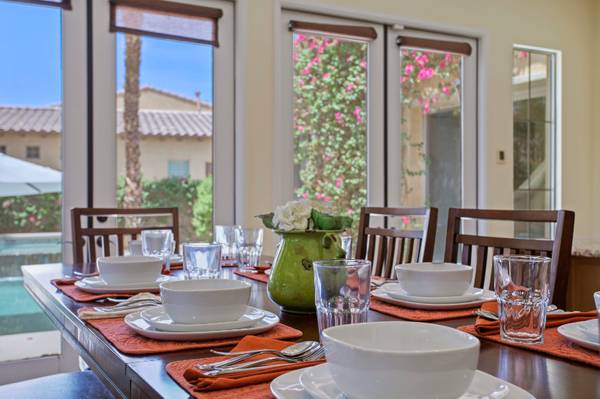 Escape to Via la Serena — a 4-bed, 3.5-bath designer home in La Quinta’s gated Carmela community. Enjoy a private pool with Baja shelf, spa, fire pit, outdoor loft, and lush landscaping in a tranquil backyard oasis. Inside, relax in the spacious primary suite or entertain in the open kitchen with center island and pantry. An attached casita with private entrance adds extra flexibility for guests. This single-story home includes custom tile floors, 4 HD TVs, fast Wi-Fi, formal dining and living areas, and multiple bedrooms with backyard access. French doors from the primary suite lead straight to the pool. Extras include: Gated entry with 24-hour security BBQ grill & outdoor dining Upscale linens, towels, & toiletries In-home washer & dryer Access to PGA West golf & nearby parks A refundable security deposit is required prior to your stay. Full details provided upon booking.