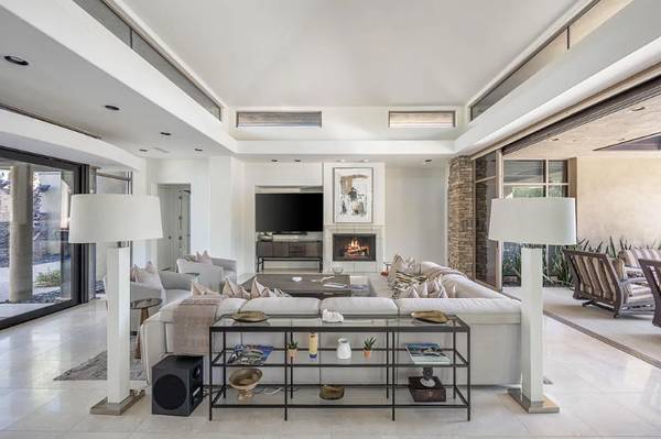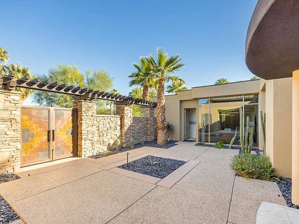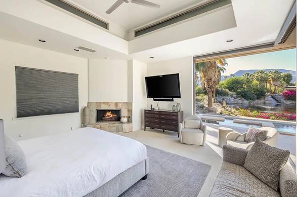 Tucked away in Bighorn Golf Club’s Canyons side, this villa captures serene lake and waterfall views for a true retreat. Floor-to-ceiling sliders blur indoor and outdoor living, filling the vaulted great room with light from clerestory windows. The open plan flows from the living area to the dining room and chef’s kitchen with pro-grade appliances, center island, and granite breakfast bar. Outdoor spaces impress with a patio for lounging, dining, barbecuing, plus pool and spa overlooking the water. The primary suite offers pocketing sliders to the pool, spa-like bath, and large walk-in closet. Two guest suites feature private courtyards and en-suite baths, one may double as a den. A detached casita adds a media center, morning bar, full bath, and walk-in closet—ideal for family or guests. Membership not included.