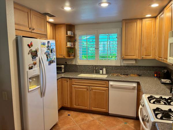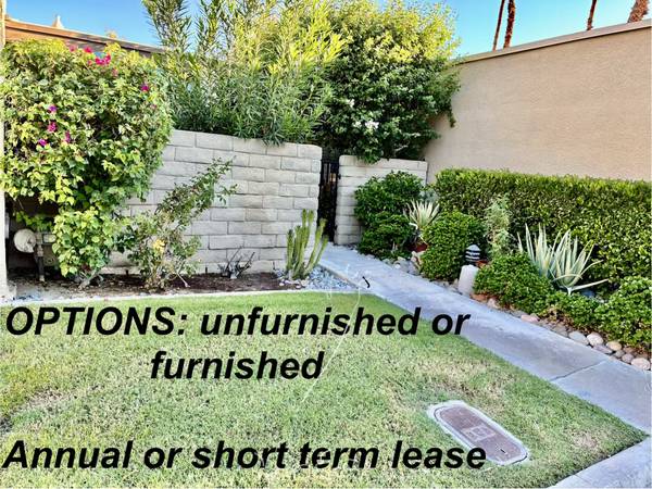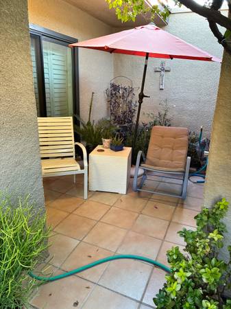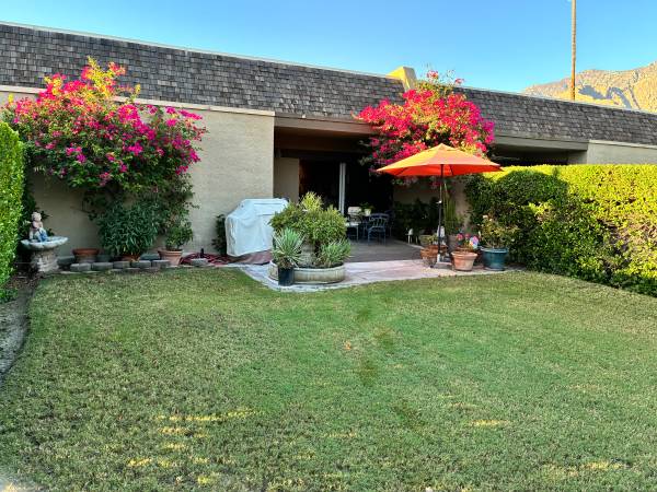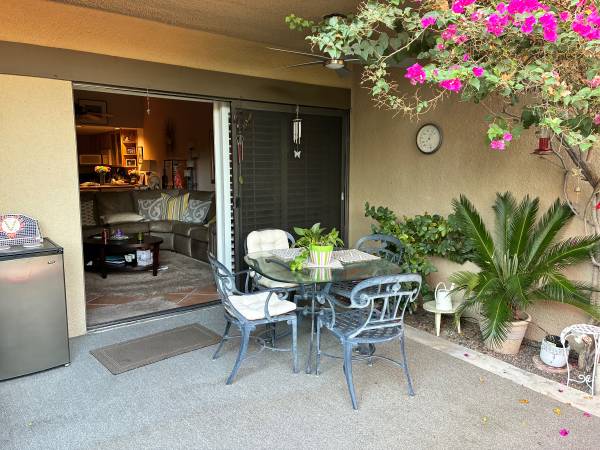 Long or short term lease, furnished or not. Spacious primary bedrm with large walk-in closet as well as secondary closet, walk-in shower and private patio. Second bedrm w/queen sofa bed/den-office also with private patio. Rent includes gardner, cable & Wi-Fi ( rent maybe adjusted based on final agreement terms, long/short term, furnished/unfurnished, etc. Private yard, garage, washer/dryer in-unit, mountain views, walking distance to downtown, groceries, Starbucks and restaurants. Pool, SPA, pickleball & tennis. Small dog will be considered.