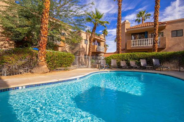 Pet-friendly two bedroom apartments for rent in Palm Springs, California. Stunning amenities include a balcony and patio, carpeted floors, walk-in closets with mirrored doors, wonderful views, a swimming pool, spa, on-call maintenance, and a laundry facility.