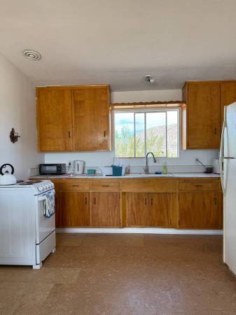 Bright and sunny with nice views of nearby Goat Mountain. A good bit of the 5 acres is fenced. 1015 square feet - open living/dining/kitchen space, large bedroom and 2nd bedroom or "sun room" studio.