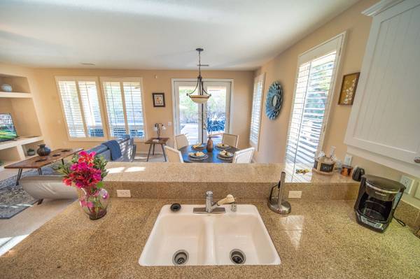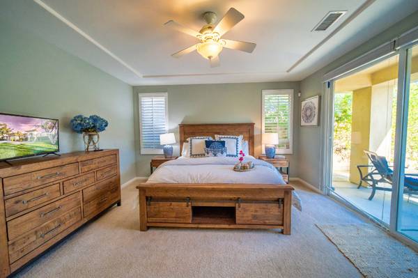 Welcome to your private desert retreat in the gated Tuscany community of Rancho Mirage. This furnished 3-bedroom, 2-bathroom home offers 1,843 sq ft of comfortable living with stunning mountain views. The great room features a cozy fireplace and flat-screen TV—ideal for movie nights or relaxing with loved ones. The open kitchen includes granite countertops, double ovens, microwave, and dishwasher. Enjoy coffee in the breakfast nook or host dinners in the formal dining room. The primary suite offers a spa-like bath with soaking tub and separate shower. Plantation shutters throughout provide comfort and privacy. Step outside to your backyard oasis with a private pool, spa, and mountain views. Additional features include a double-car garage with direct entry and access to community amenities: pool, spa, playground, and dog park. Located in a quiet cul-de-sac, this home is perfect for a seasonal or long-term stay. A refundable security deposit is required prior to your stay.