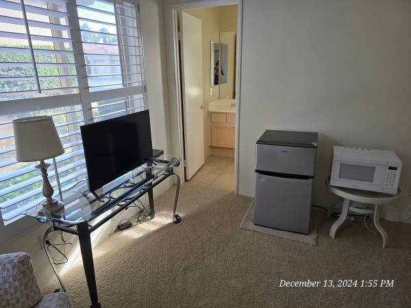 Private, quiet, furnished casita in Rancho Mirage Country Club. Guard gated community adjacent to Eisenhower Medical Center on Bob Hope Dr. Separate entrance, Olympic queen size bed large closet, high speed internet, tv, cable, microwave, apartment size frig, ceiling and tower fans, off street parking, pools. All utilities included.