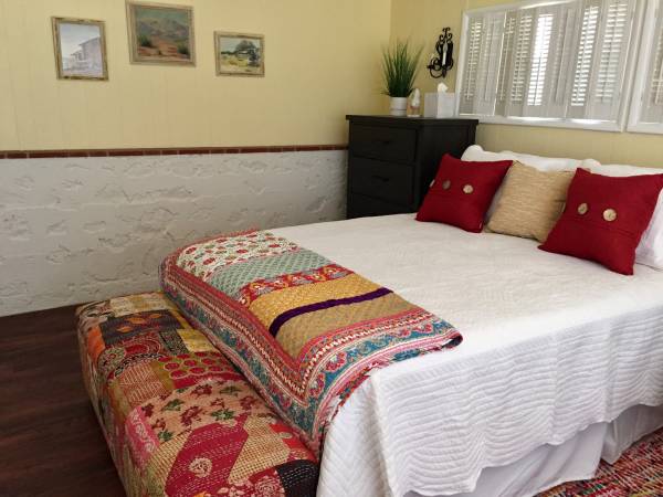 This 2 bedroom 2 bath charming fully furnished cottage on a 400 acre historical ranch is for lease. Comes with a front patio and fenced off cattery to enjoy the outside. Washer and dryer and fireplace in the home. Usually at least 10-15 degrees cooler than the desert. Access to most areas of the ranch. Pick your fruit from our 160+ fruit and nut orchard. Picnic by our ponds and streams. Visit with our livestock animals. Hike the ranch. Serene rural living just 15 minutes from the ranch front gate to Palm Springs. This is a year’s lease. Not a short-term rental, and not a party house. This is a No Smoking property. Must provide proof of a minimum of a 650 credit score to view the cottage.