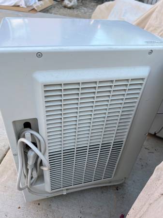 Dehumidifier 70 pints per day 8.4 amp Pulls water from the air well. Internal bucket or drain by gravity through a house It has 4 caster wheels Not cosmetically perfect- but functions as intended....