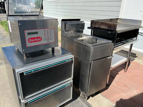 Everything in picture as is 2 door bottom fridge, vacuum sealer, deep fryer, flat top, stainless steel table asking 2,000 OBO