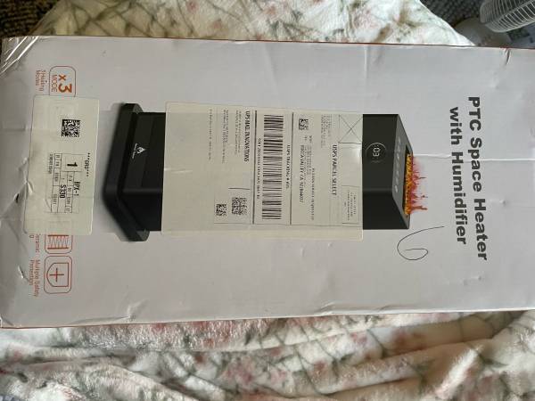 Has a humidifier and flame function. Never used. In original box. Paid $38.74 plus tax. Pick up Yucca Valley