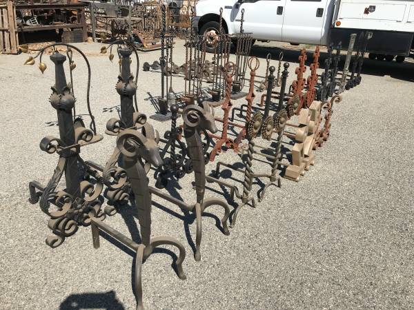 *LOTS OF FIREPLACE ANDIRONS. ALL HAND-FORGED OF HEAVY IRON UNIQUE PIECES.