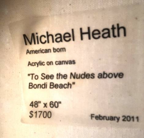 Original 2011 MICHAEL HEATH Painting 48 X 60 (To See the Nudes above Bondi Beach) Authentic original Heath painting, in absolute mint condition, original frame. Asking $900 delivery available. Call...