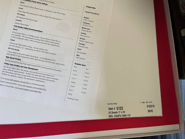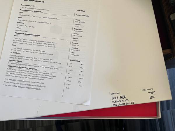 Item #1654 25 Sheet 17 x 25 68lb ULTRE PRO GLOSS and Item #5123 25 Sheet 17 x 25 68lb ULTRA PRO SATIN unopened boxes Price online $74.20 + tax/each box