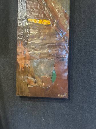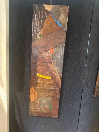 Mix media artist Anthony Messineo releasing some of his award-winning pieces composed of found items from abandoned Homestead abandoned roads throughout our desert area, sheet metals are wrapped around a wooden frame hemmed sealed suitable for outdoors. Also many to choose from selling far below gallery prices call Anthony for appointment. Thank you.😎✌️