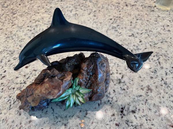 Set of 3 Sculptures of Seal Dolphin and Seagull mounted on Burlwood. If sold separately $30 Ea.