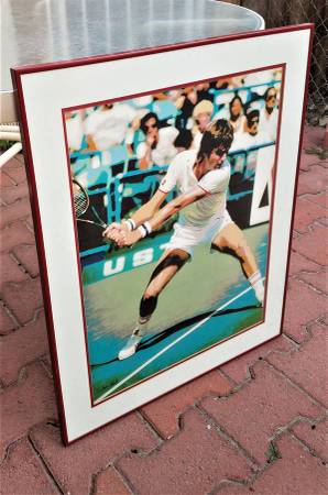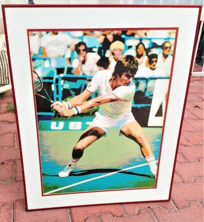 Wonderful piece of Tennis memorabilia. Jimmy Connors was the best tennis player in the world at one time. Professionally framed 28"x 22"(approx.) Please call Marc