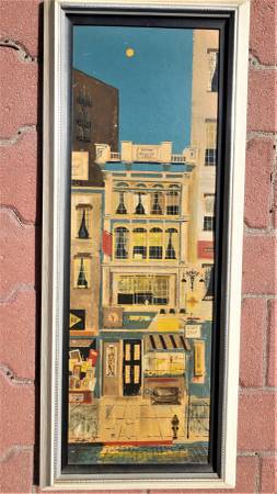 Vintage 1960s mid century modern PAINTING by artist MARGARET LAYTON Framed silkscreen print by American artist, Margaret Layton. Silkscreen ink on paper, ca. 1960. Size: 35" X 15" Very good...