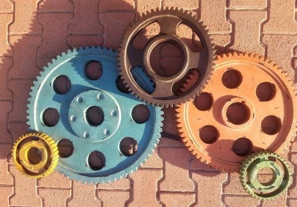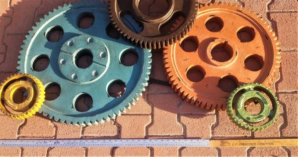 Great looking industrial design. Ready to hang on wall. Large wall coverage 48 inches wide and 31 inches high. Please call Marc