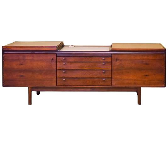 -ANTIQUE FURNITURE including 1970s Swiss de Sede Team leather patchwork sofa bed DS88, Lane Furniture Staccato Brutalist dresser, Robert Heritage Granville for Archie Shine rosewood sideboard buffet with hotplate, Arts & Crafts mission oak writing desk, 1960s Conant Ball 2-piece hutch, Milo Baughman style chrome & glass display cabinets, Westnofa teak chest of drawers, Early 20th C. Arts and Crafts oak sideboard, Fritz Hansen Superellipse dining table & more