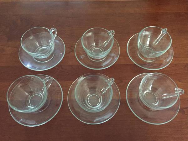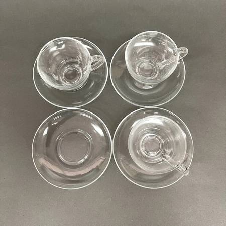 Retro vintage Arcoroc France Glass Cups and Saucers Sets Classique Clear 7 Pieces