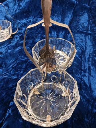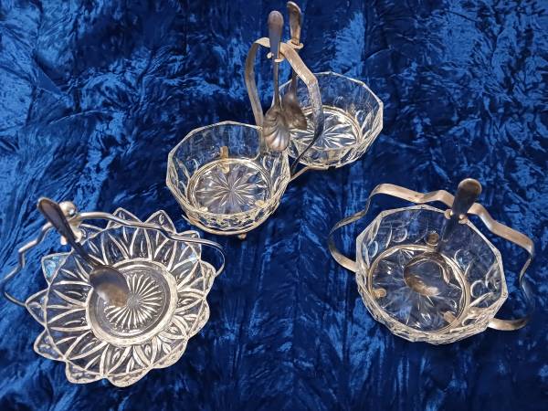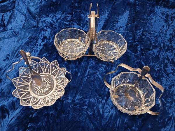VINTAGE CUT GLASS & SILVERPLATE CONDIMENT DISHES $5 / EACH FOR SINGLE DISH $10 FOR DOUBLE DISH VERY GOOD VINTAGE CONDITION