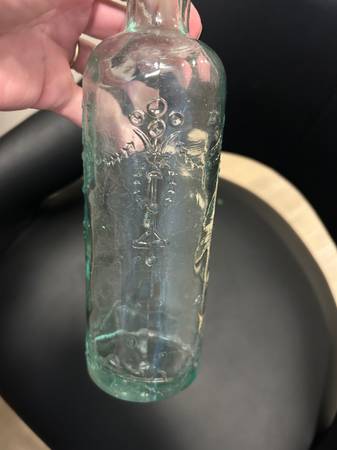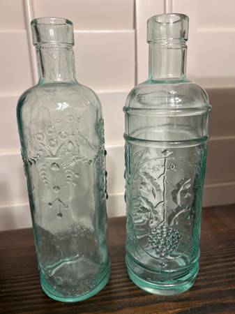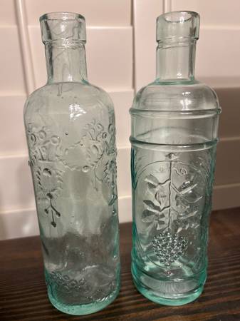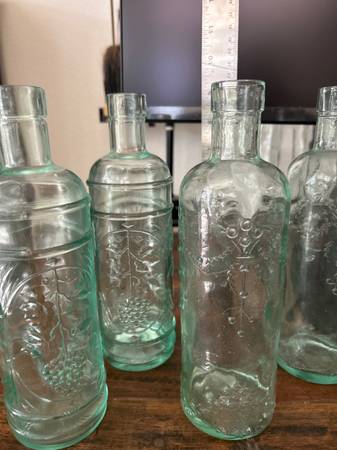 4 Vintage glass bottles - Light green glass. $25 Cash only