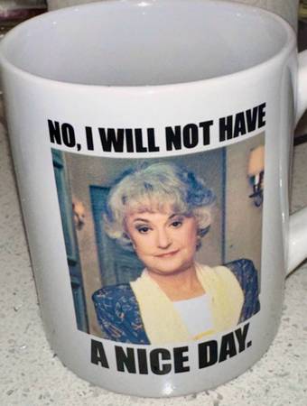 Golden Girls Ceramic Mugs, shot glasses T-Shirts games, toys, pins, keychains, kitschy fun! Sunny Dunes Antique Mall 507 E Sunny Dunes Rd, Palm Springs with three huge showrooms and open everyday...