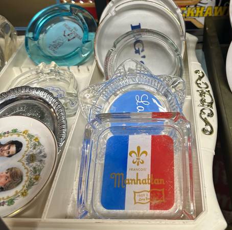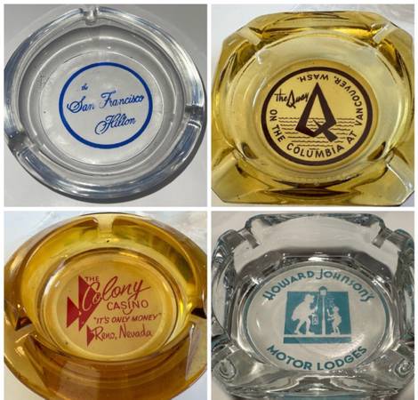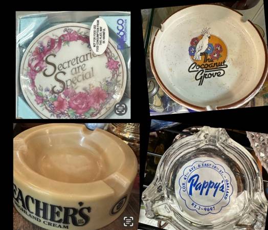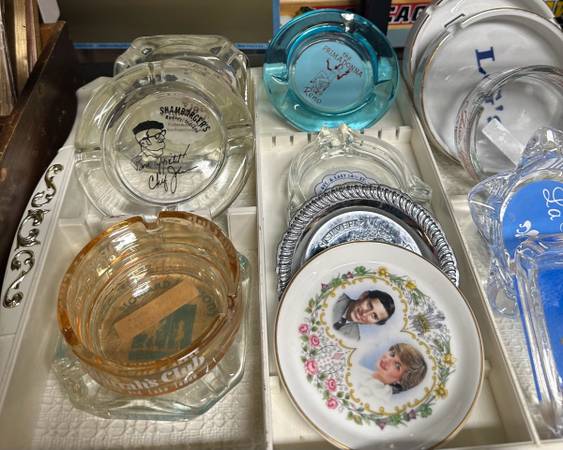 Huge array of vintage glass and ceramic ashtrays from around the world souvenirs from Hotels, Restaurants Motels Advertising and more at Sunny Dunes Antique Mall 507 E Sunny Dunes Rd in Palm Springs open everyday 10:00-5:00pm Three huge showrooms and plenty of free and easy parking