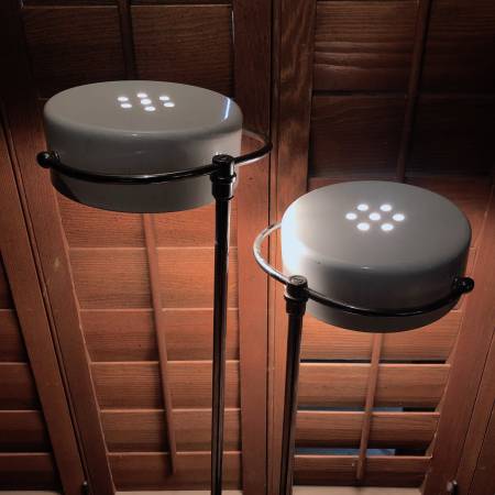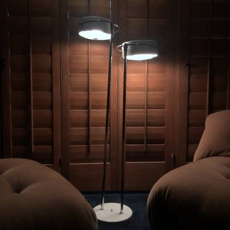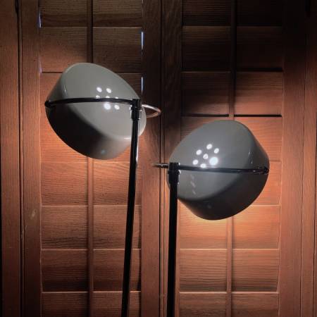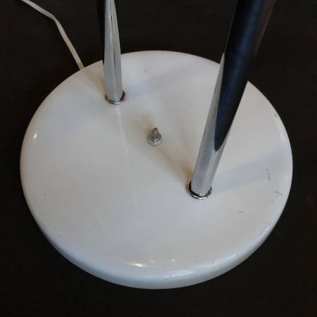 MCM Kurt Versen-style Original Floor Lamp • Maker: Mutual-Sunset • Type: Floor Lamp • Material: Enamel, Chrome • Color: White, Silver • Height Arm One: 40 inches • Height Arm Two: 45 inches •...