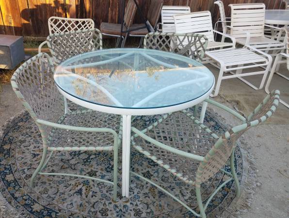 2 sets available see pictures. This is the"Tamiami" Brown Jordan line of patio furniture. Table and 4 chairs. I have additional matching model items. Need refurbishing. 2 complete sets. They are...