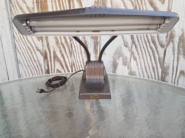 Looks great and works great. Vintage Goose-neck Desk Lamp Fluorescent Light Retro Industrial Vintage Dazor 1000 Industrial Double Flexible Gooseneck Fluorescent Desk Lamp This light is industrial...