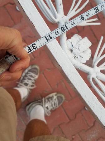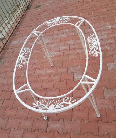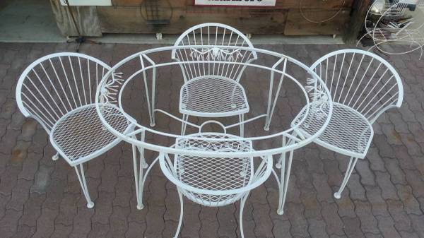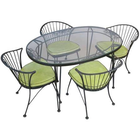 1950's solid wrought iron table only. Great vintage condition. The glass top and chairs are no longer available. The oval table has a skirt with pine cones and pine needles ...that how they got the...
