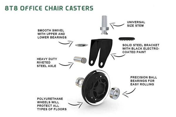 A year ago I put these casters on several chairs but never used the chairs. My wife has now sold the chairs with the original wheels attached. So now I have 22 hardly-ever-used high-quality casters on my desk. Some of the casters are brand new. I don’t remember how I got 22 casters as they are usually sold in packages of 5. A mystery.