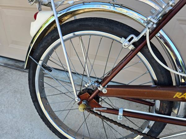 This has the unusual Dynohub(untested)in front that generates electricity for front and rear lights.