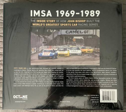 IMSA 1969 to 1989, The Inside Story of How John Bishop Built the World’s Greatest Sports Car Racing Series. New hardcover in shrink wrap. 12.2 x 1.6 x 10.8 inches, 384 pages. $80