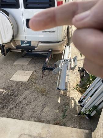 1 UP USA RAKATTACH HITCH SWING-OUT Supports 250 lbs.. East swing away to allow access to you vehicle.