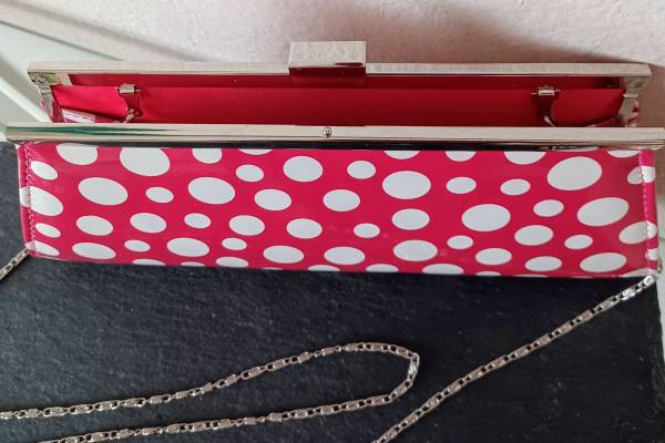 Neiman Marcus hardshell handbag in like new condition and from non-smoking home. This purse has a patent finish, satin lining and silver hardware. Wear as a shoulder bag, crossbody or tuck/detach...