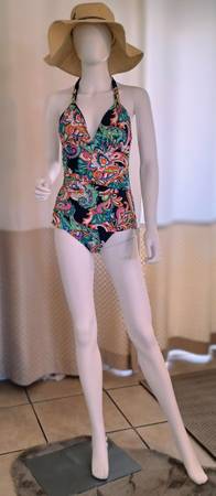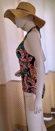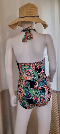 Tommy Bahama Mare halter one-piece swimsuit with slight draping in front. This suit is in excellent condition and from non-smoking home. Freshly laundered. Message us for measurements.