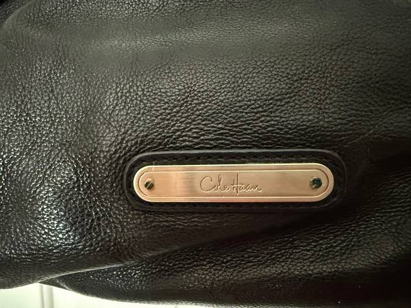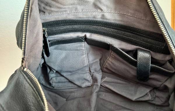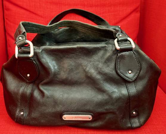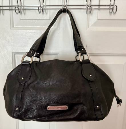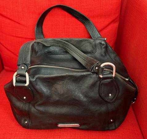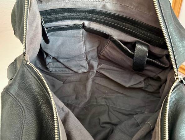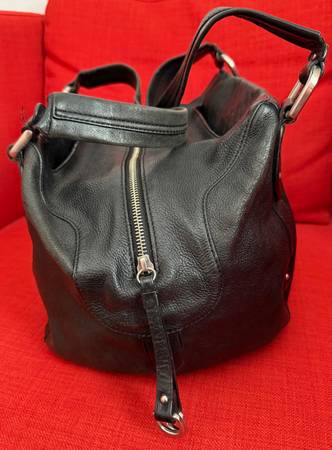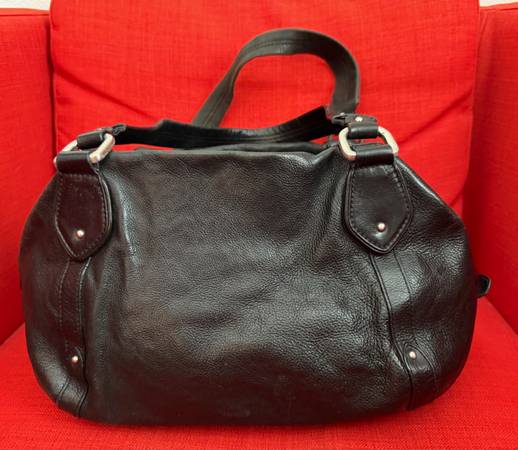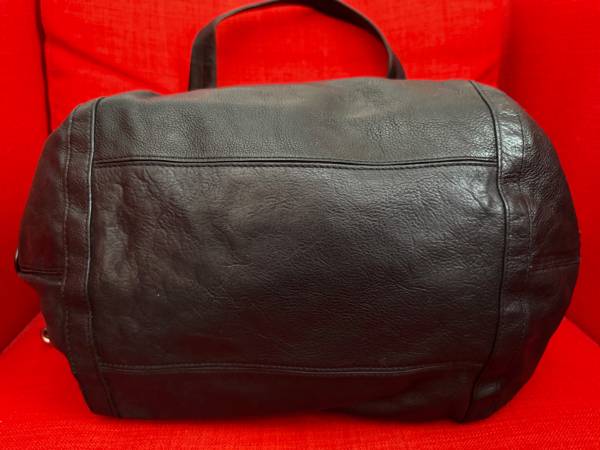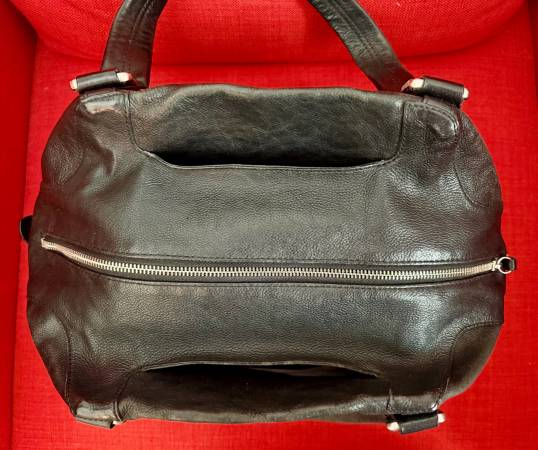 APPROXIMATE DIMENSIONS: 15" L X 9" W X 8" D 1 INTERIOR ZIPPERED COMPARTMENT 2 INTERIOR POCKETS INCLUDES DUST BAG. HEAVY WEAR ON CARRY STRAP (SEE PHOTO).