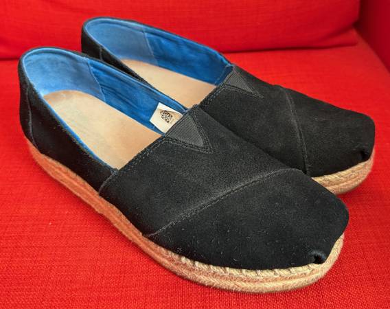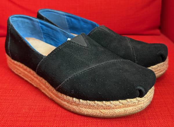 TOMS' WOMEN'S SLIP-ON SHOES W SUEDE UPPERS, BLACK, 9-1/2 MEDIUM