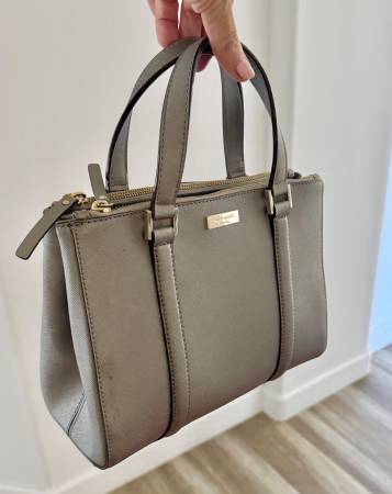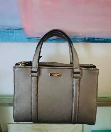 Classic and chic! Authentic Kate Spade New York Saffiano leather bag in smoky grey with gold hardware.