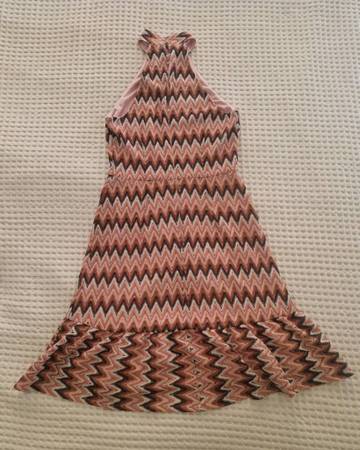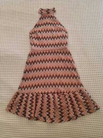 Iconic Dona Morgan Dress with Chevron Stripes in soft pink, brown and beige, in perfect condition!