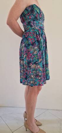 Shoshana Strapless Dress, Blue & Pink Flowers, Size 0 - clothing &...