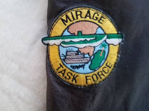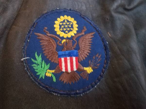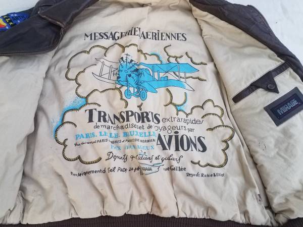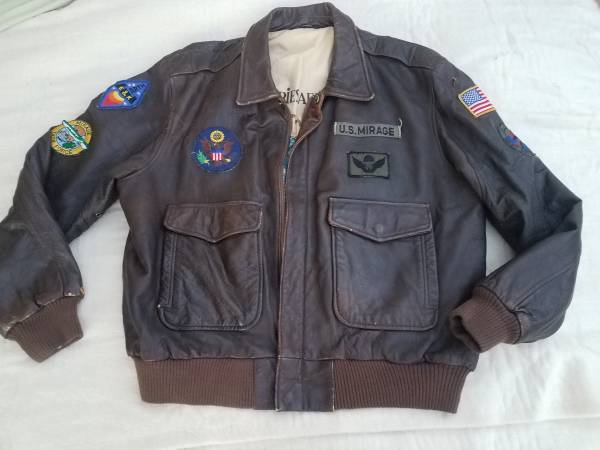 Vintage Leather Bomber Fight Jacket With Patches Size 46 Good pre owned condition. Lots of patches. Please call Marc