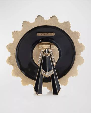 Cast pewter with a 14K gold finish, hand enameled, and hand-set stoned with Swarovski® stones. Battery included.