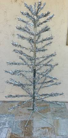 If you're interested we will gladly call or text you, please let us know your preference and include a phone number. Vintage Aluminum Christmas tree and original box. About 63 inches tall. Comes...