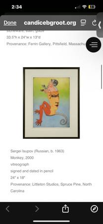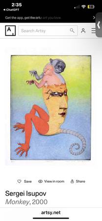 Title: Rare Sergei Isupov “Monkey” Print (2000) — Signed Vitreograph