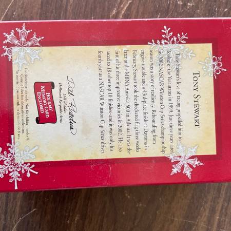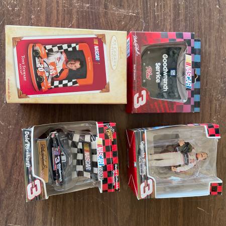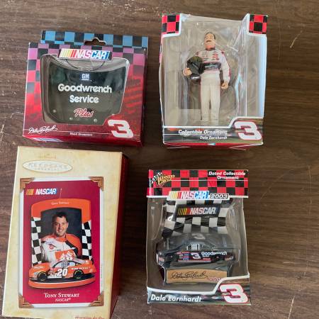 4 NASCAR CHRISTMAS TREE ORNAMENTS $25.00 each 1 DALE EARNHARDT HOOD 1 DALE EARNHARDT FIGURINE 1 DALE EARNHARDT WINNERS CIRCLE 1 TONY STEWART WINNERS CIRCLE SERIOUS INQUIRIES ONLY / NO SCAMMERS CALL...