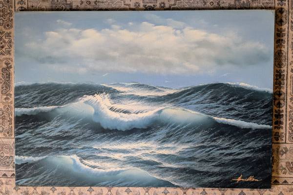 Helen Hamilton signed Seascape, oils on canvas, 24x36 inches, unframed, on sale $50