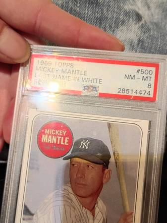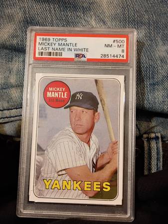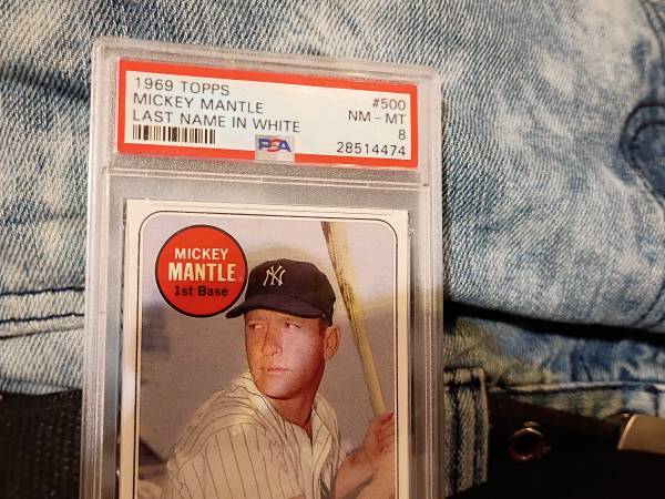 I have a Beautiful 1969 Base Set Mickey Mantle Last Name in White Baseball Card In Excellent Condition. I got it From an Entire Estate Lot I Purchased At Auction.