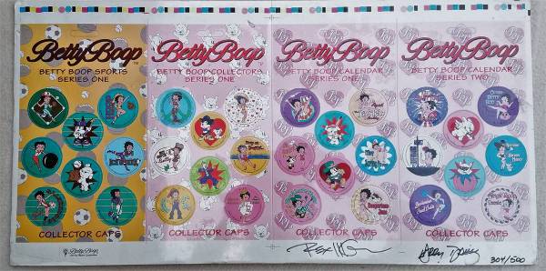 Betty Boop Collector Pogs Set. Uncut Sheet of 32 pogs. Double Signed and Numbered Limited signed issue of 500. # 304/500 Still in original unopened plastic covering. Please call Marc